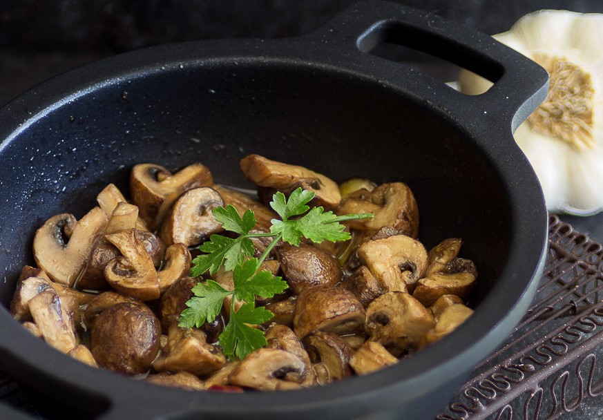 Comenzaremos lavando bien los champiñones y colocándolos en un bol con agua fría y el jugo de limón. Se secan muy rápidamente con un paño de cocina limpio. Los picamos si son grandes o los dejamos tal cual si es de cuerpo pequeño. Dentro de una olla, ponemos el aceite y los ajos laminados o picaditos. Los doramos muy ligeramente y añadimos los champiñones y la sal. Para quienes prefieren los sabores picantes, inclusive pueden agregar un poco de merquén. Ponemos a fuego mediano durante 10 minutos y cuando pase el tiempo subimos el fuego a fuerte y dejamos que se cocinen durante cinco minutos más, removiendo para que los champiñones se cocinen por igual. Servirlos muy calientes, espolvoreados con perejil.